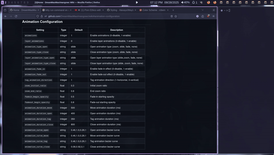 Over the last few weeks I have found myself hunting for the perfect window manager. Trying, qtile, niri, dwm, dwl, hyprland (of course), and several others. I have found that all of them tend to accell at a specific thing but end up lacking in one of more other features that I consider necessary for my workflow. Currently Mango satisfies all my requirements all while having active development, making it appealing to me in particular. This article is mainly just a showcase of tags and mango in general features mango provides. Hopefully this article can at least be an introduction to mango as a viable alternative to the other window managers.